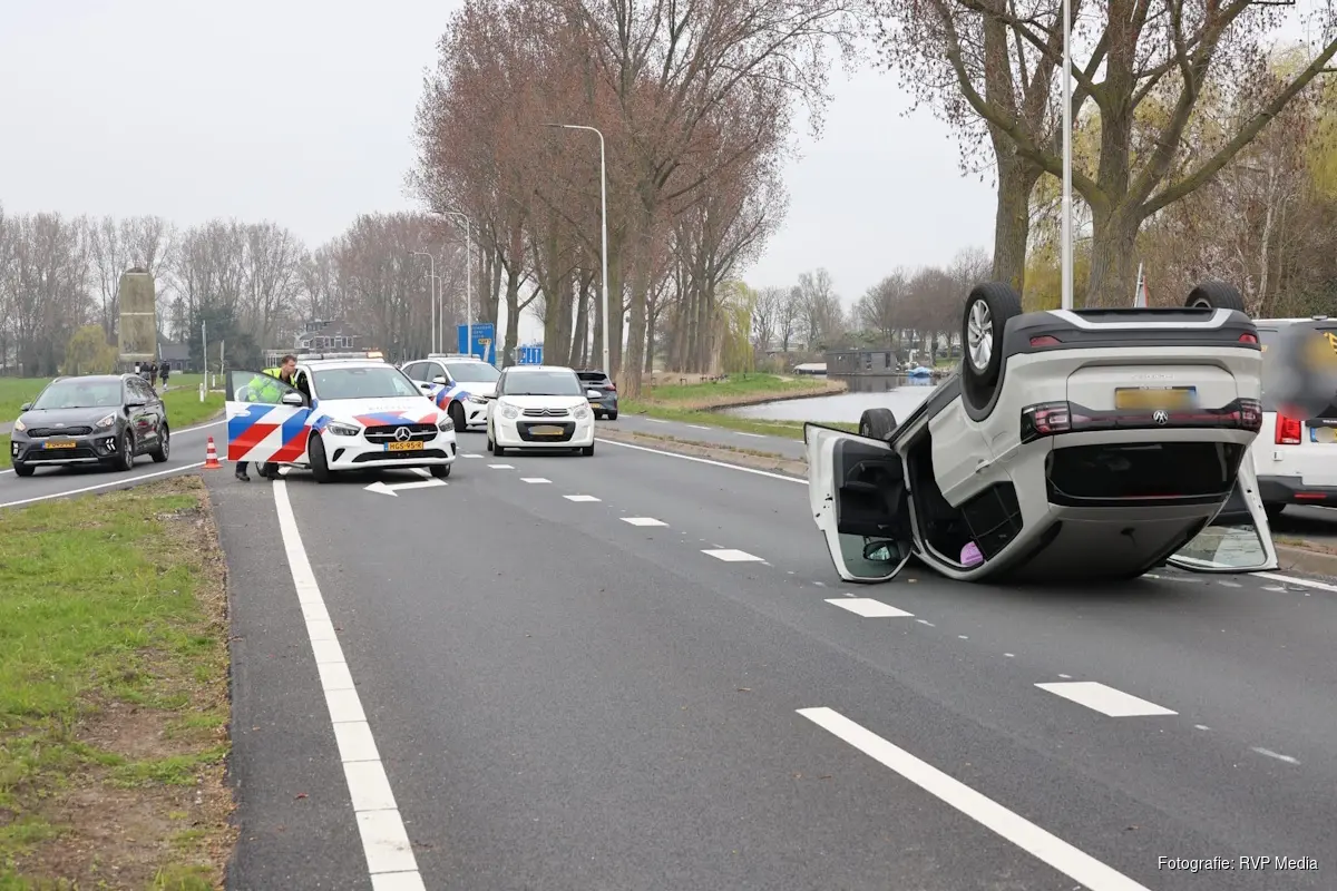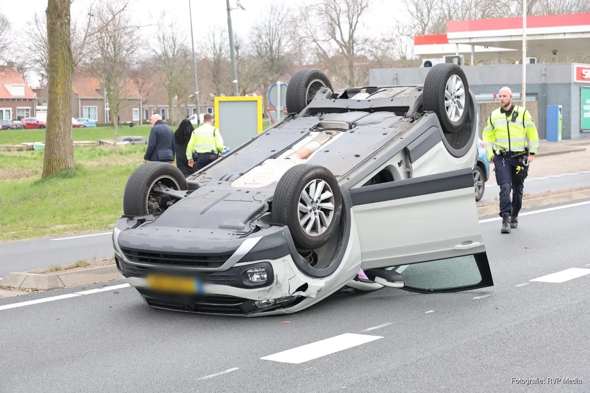 De andere automobilist werd geraakt en week uit naar links. Daarbij kwam de auto op een verhoogd gedeelte naast de weg terecht, waarna het voertuig met inzittenden – waaronder een kind – over de kop sloeg.