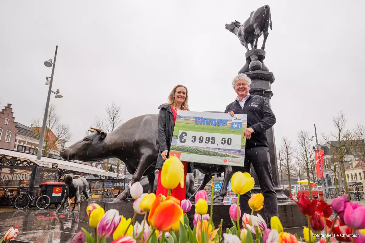 Ook deze editie is de Hartstichting het goede doel van de Ronde van Noord-Holland. De Hartstichting investeert in onderzoek naar hart- en vaatziekten om zo Nederland hartgezonder te maken, met de nadruk op preventie. Want: 'iedereen een gezond hart, voor nu en later'. Deelnemers konden bij inschrijving een vrijwillige bijdrage doen aan dit goede doel, wat resulteerde in een opbrengst van maar liefst: € 3.995,50. Op de Koemarkt in Purmerend werd vanmiddag om 14.30 uur de cheque met dit schitterende bedrag aan de Hartstichting overhandigd.
